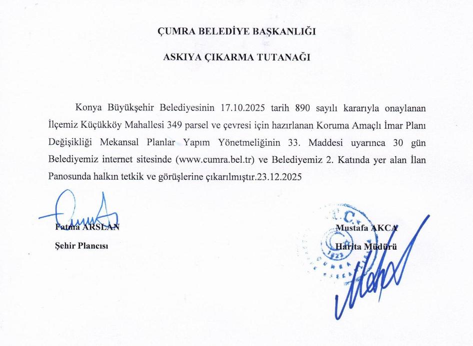 Küçükköy Mahallesi 349 Parsel ve Çevresi İçin Hazırlanan Koruma Amaçlı İmar Planı Değişikliği
